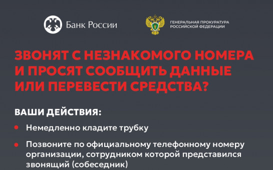Банк России совместно с Генеральной прокуратурой РФ информирует о действиях лиц, вводящих граждан в заблуждение с целью хищения денежных средств